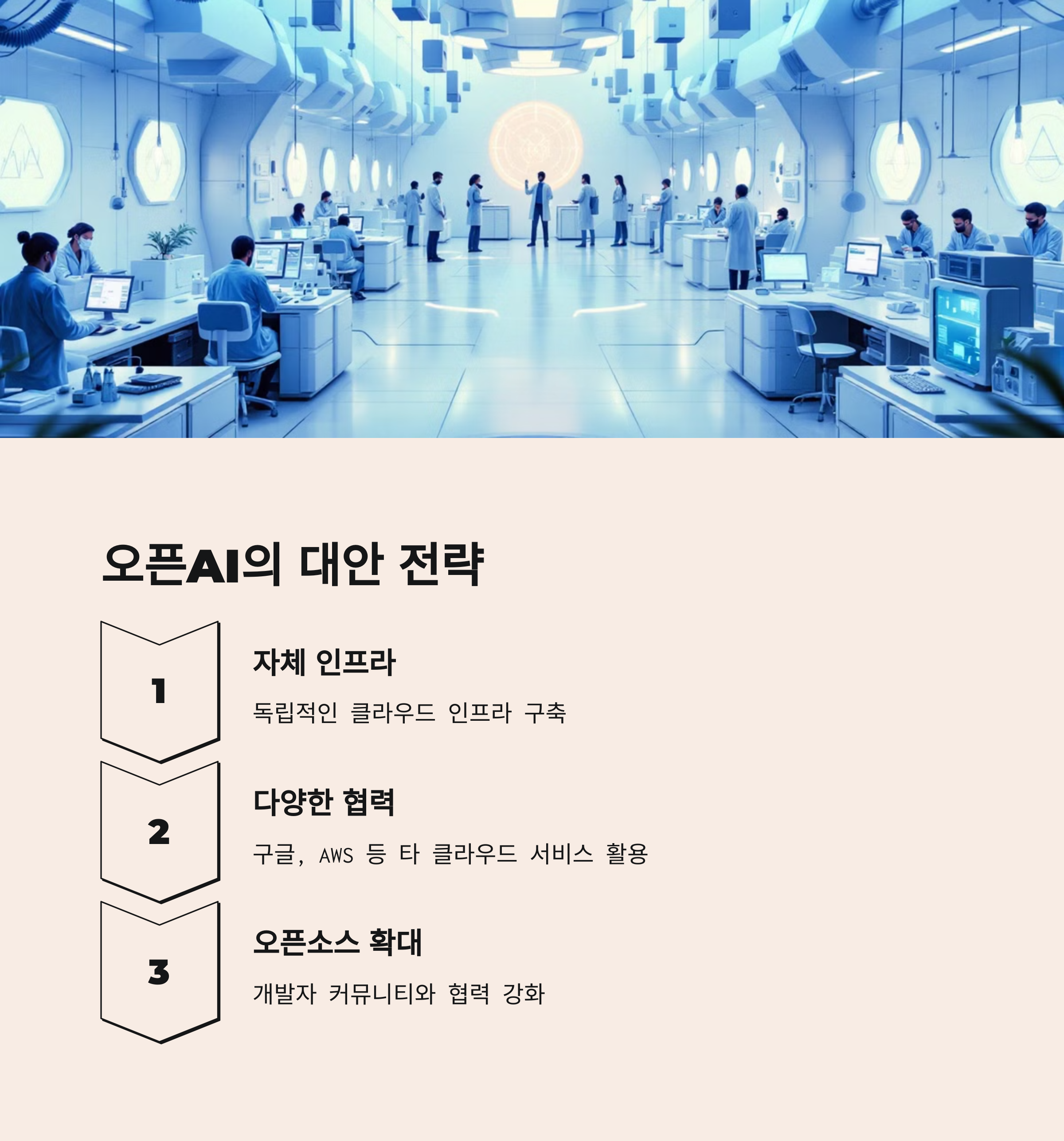 마이크로소프트 의존도를 줄이기 위해 오픈AI는 다양한 대안 전략을 고려하고 있습니다. 주요 전략은 다음과 같습니다.