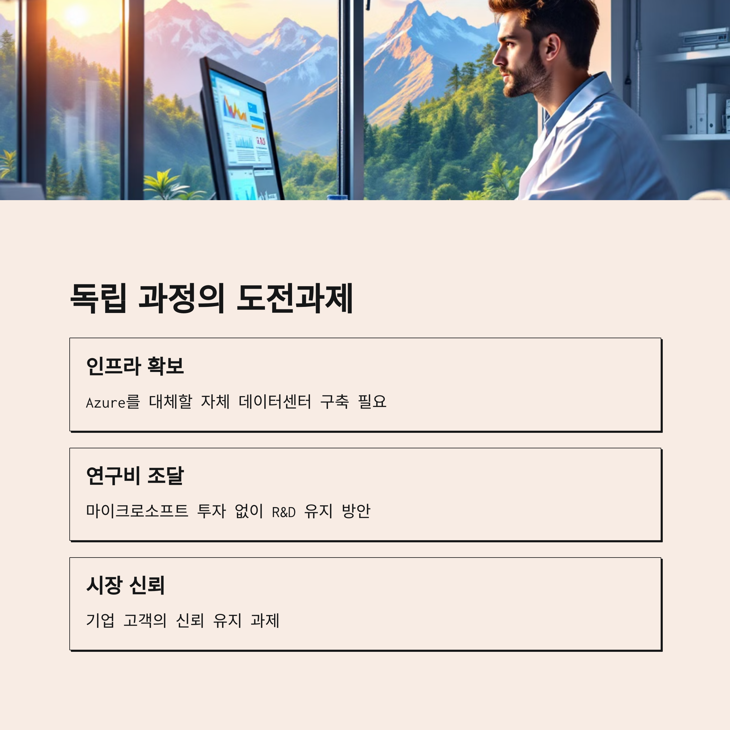 | 클라우드 인프라 확보 | 마이크로소프트의 Azure를 대체할 자체적인 데이터센터 구축 필요 |