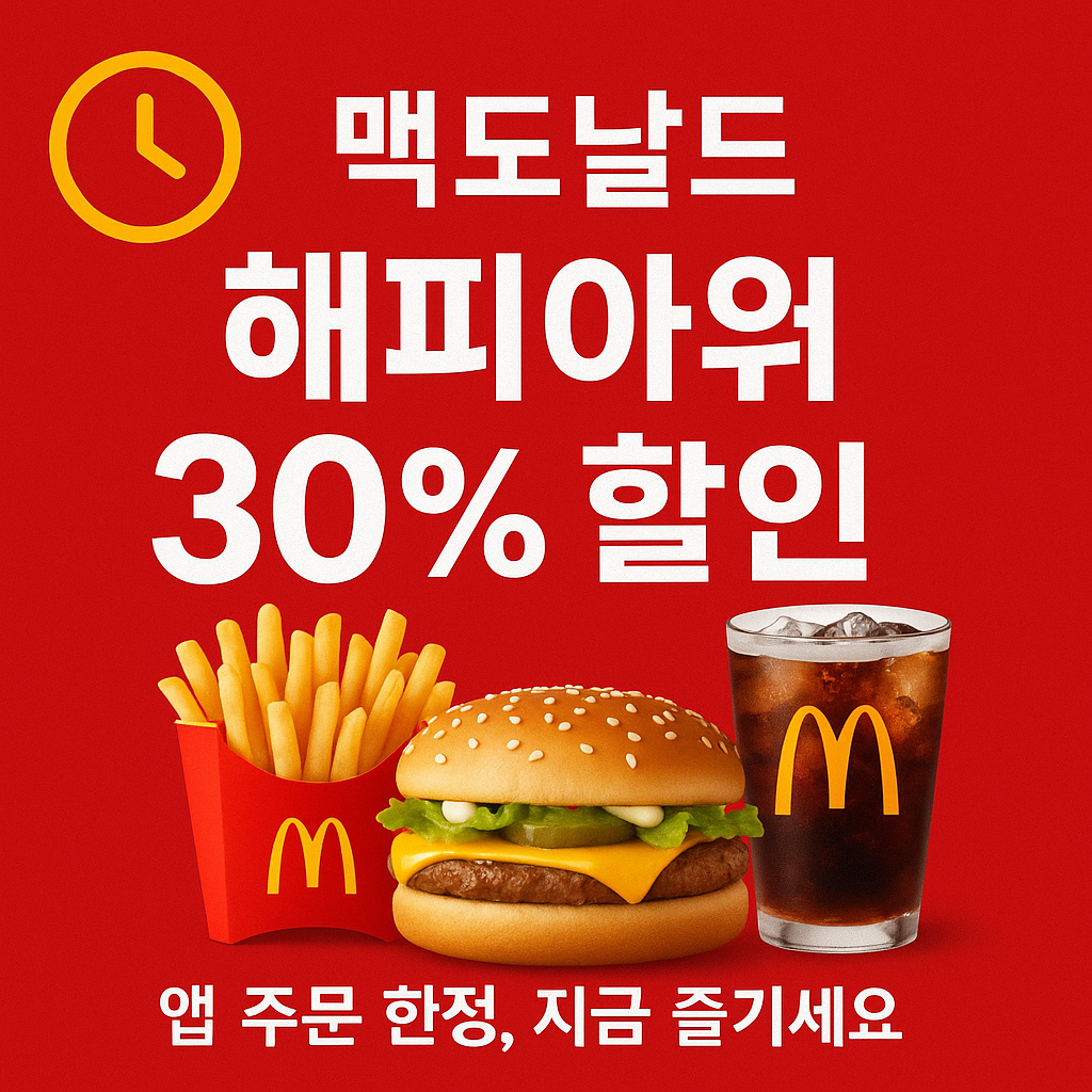 태그: 맥도날드, 해피아워, 할인, 앱주문, 6월이벤트, 세트메뉴, 30%할인, 오후간식, 프로모션, M오더, 맥도날드앱
