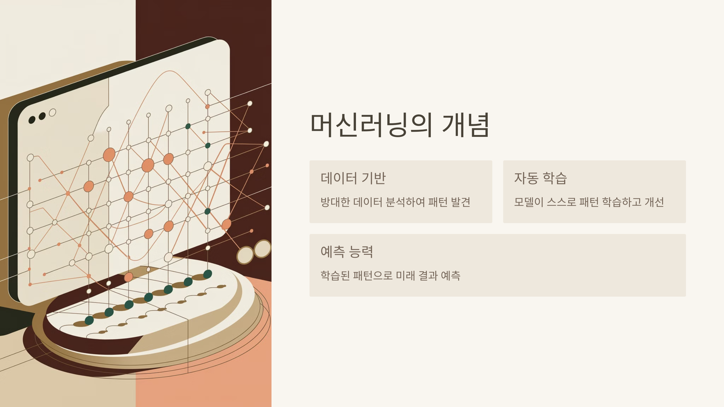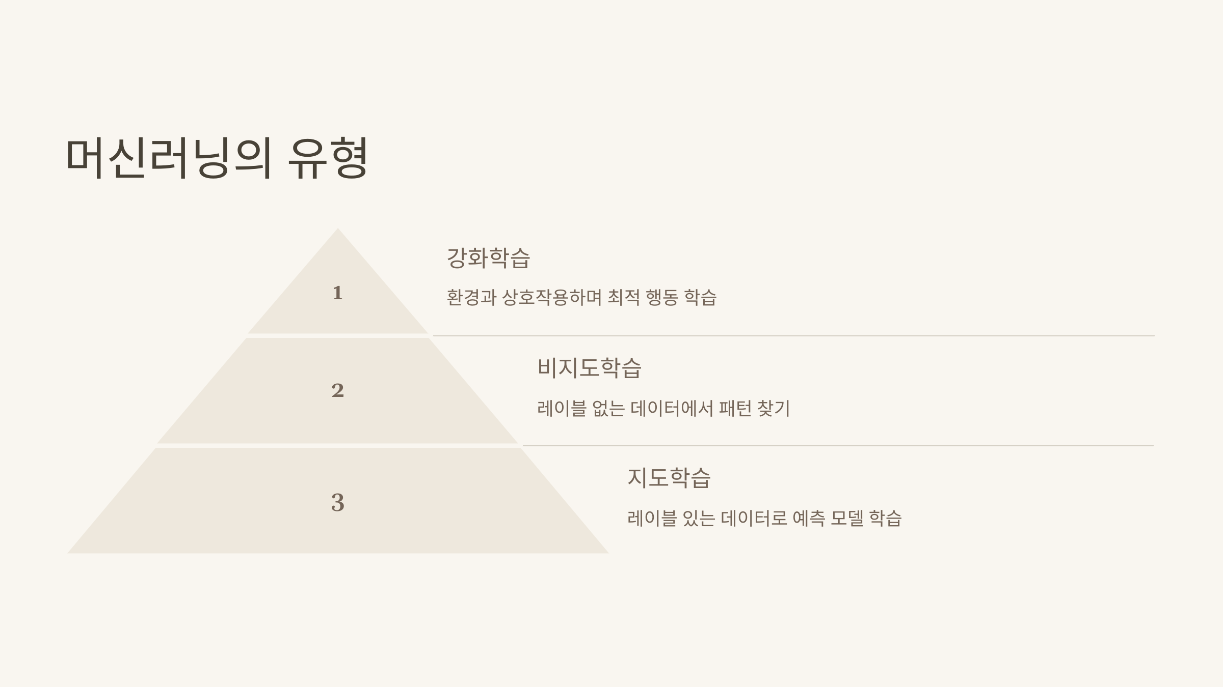 머신러닝은 데이터를 기반으로 모델을 학습하고, 패턴을 찾아 예측하는 기술입니다. 머신러닝은 크게 세 가지 유형으로 나뉩니다.