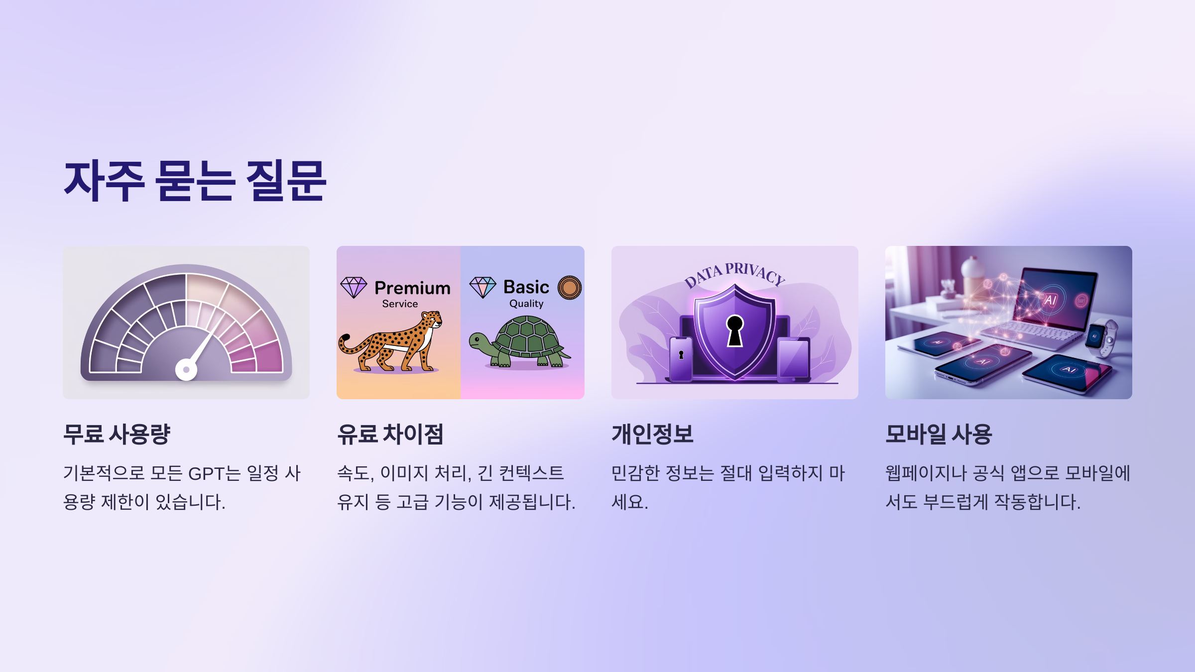 유료 버전은 속도가 빠르고, 이미지·파일 처리, 더 긴 컨텍스트 유지, 최신 데이터 접근 등 고급 기능이 제공돼요.