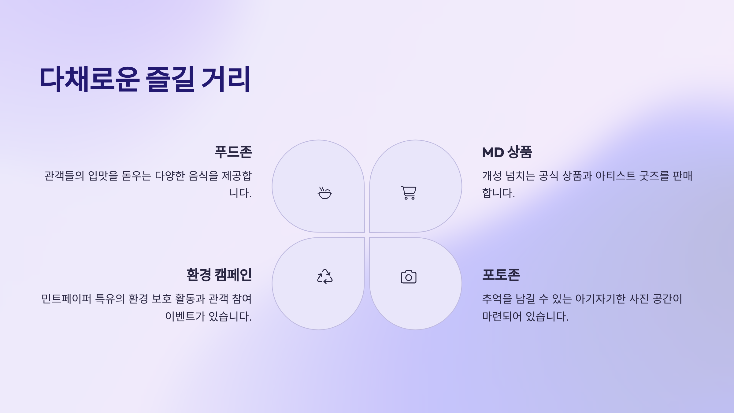 BML은 단순히 음악만 즐기는 축제를 넘어, 다채로운 즐길 거리와 편의 시설로 '라이프'라는 이름값을 톡톡히 합니다. 페스티벌 현장 곳곳에는 관객들의 입맛을 돋우는 다양한 푸드존과 개성 넘치는 공식 MD 상품 및 아티스트 굿즈를 판매하는 부스, 그리고 추억을 남길 수 있는 아기자기한 포토존 등이 마련되어 즐거움을 더합니다. 또한, 주최사인 민트페이퍼 특유의 환경 캠페인이나 관객 참여 이벤트 등은 BML만의 특별한 문화를 만들어갑니다. 관객들은 편안한 복장과 돗자리, 선크림 등을 준비하여 마치 도심 속 공원(주로 올림픽공원)으로 피크닉을 온 듯한 기분으로 축제를 만끽할 수 있습니다. 잘 짜인 타임테이블과 쾌적한 관람 환경 조성 노력은 BML이 오랫동안 많은 사람들에게 꾸준히 사랑받는 중요한 이유 중 하나이며, 단순한 공연 관람 이상의 만족감을 선사합니다.
