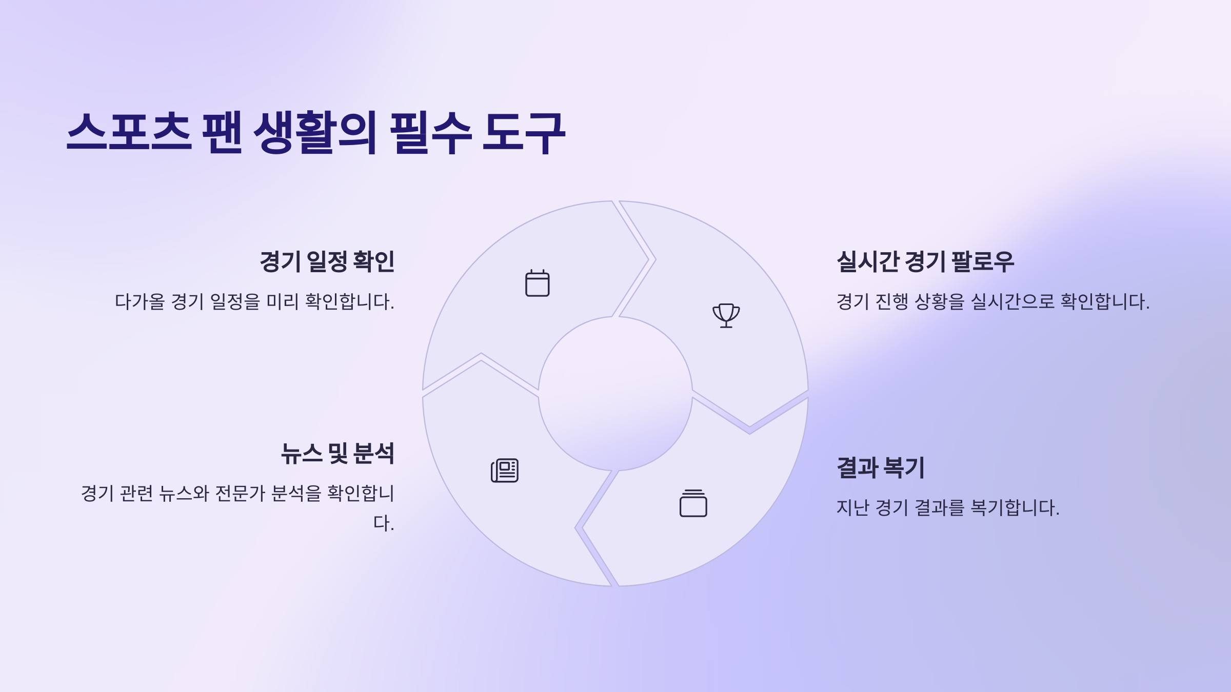 스포츠 팬이라면 누구나 응원하는 팀의 경기 결과를 실시간으로 확인하고 싶어 합니다. 중요한 득점 순간이나 경기 흐름의 변화를 놓치고 싶지 않은 마음은 당연합니다. 이러한 팬들의 니즈를 충족시켜주는 핵심 서비스가 바로 '라이브스코어'입니다. 전 세계 다양한 스포츠 종목의 경기 상황을 실시간으로 전달하며, 단순한 점수 업데이트를 넘어 경기 일정, 결과, 순위, 관련 뉴스 등 방대한 정보를 한곳에서 제공하는 정보의 허브 역할을 수행하고 있습니다. 스마트폰 터치 몇 번이면 언제 어디서든 원하는 스포츠 정보를 손쉽게 얻을 수 있어, 바쁜 일상 속에서도 스포츠의 열기를 놓치지 않게 해주는 필수적인 도구로 자리 잡았습니다.