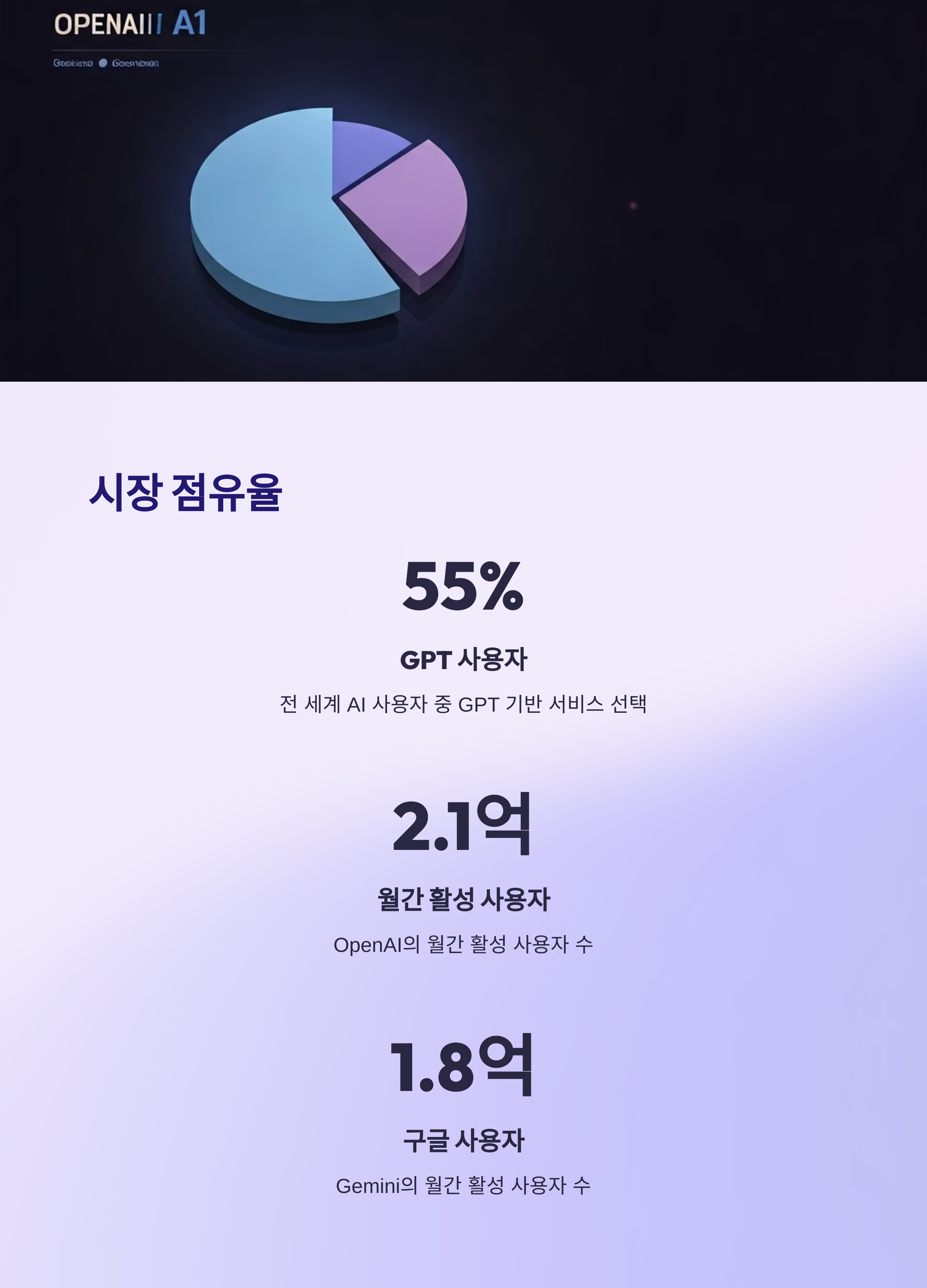 - Gemini는 기업/교육기관/구글 생태계 사용자 중심으로 확장 중