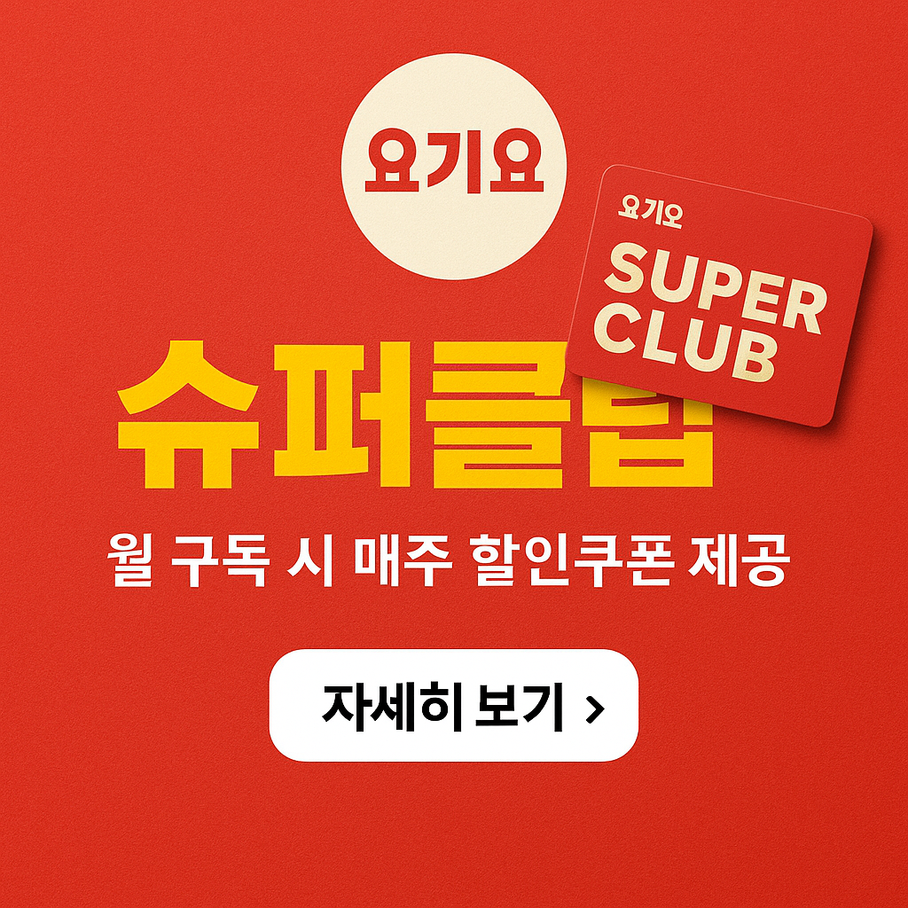 배달 음식 마니아라면 주목! 요기요의 구독형 할인 서비스 '슈퍼클럽'이 더욱 강력한 혜택으로 돌아왔습니다. 월 구독료를 내면 매주 다양한 금액의 할인쿠폰이 자동으로 지급되어, 좋아하는 음식을 더욱 저렴하고 부담 없이 즐길 수 있는 절호의 기회입니다.