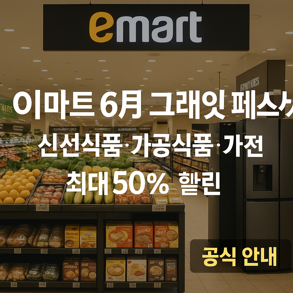 이마트 6월 고래잇 페스타: 신선·가공식품·가전 최대 50% 할인!
