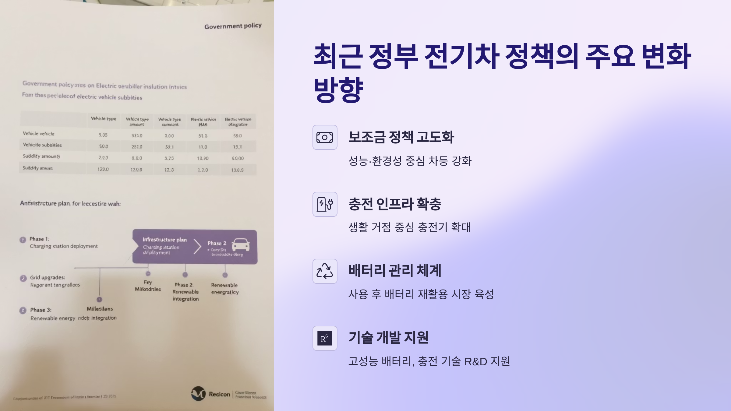 이러한 정책 변화는 단기적으로 소비자에게 혼란을 줄 수도 있지만, 장기적으로는 더욱 안전하고 효율적이며 지속 가능한 전기차 시대를 만들어가는 과정이라고 이해할 수 있습니다.