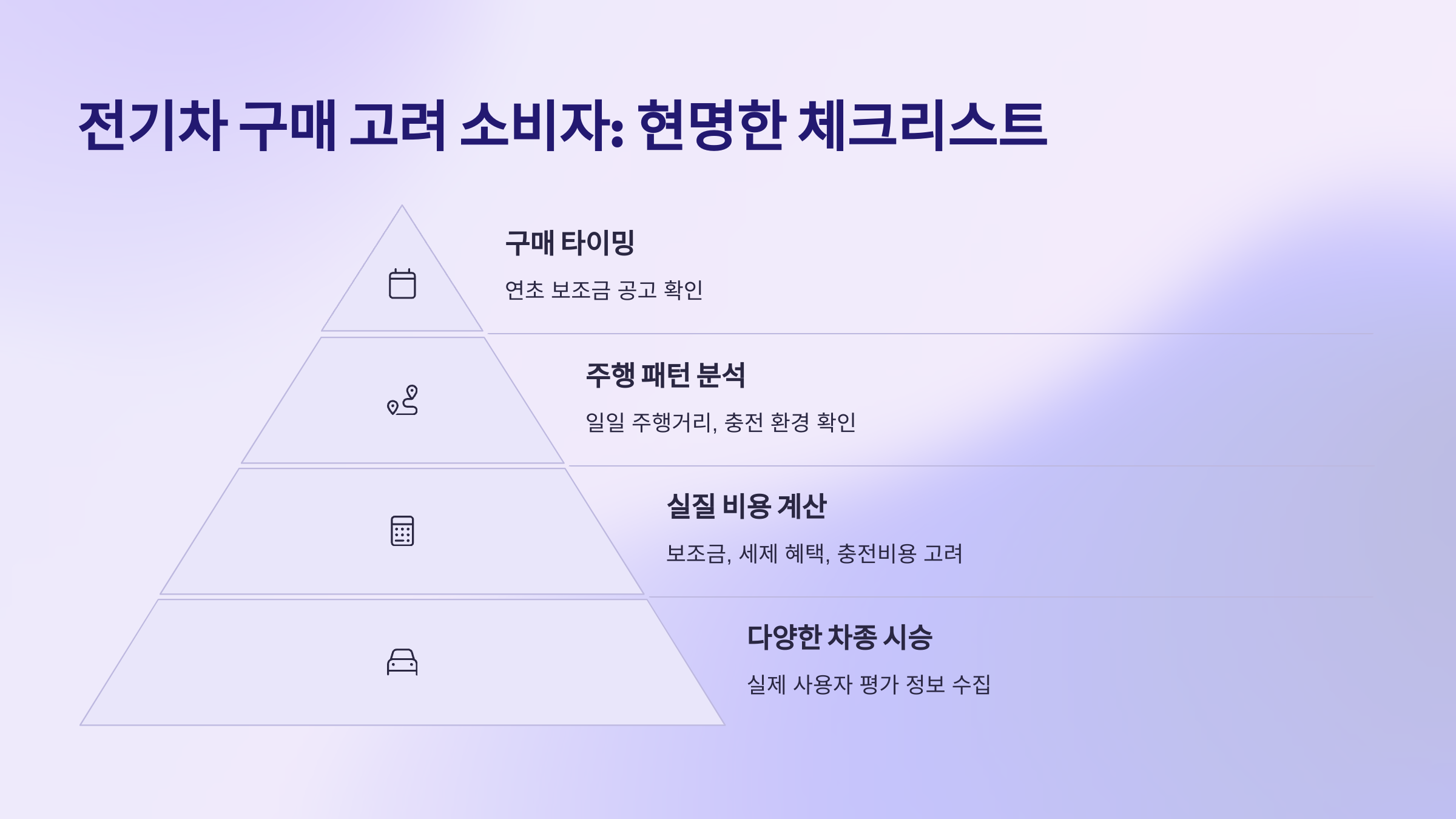 - 전기차 구매 고려 소비자: 현명한 구매 타이밍과 체크리스트