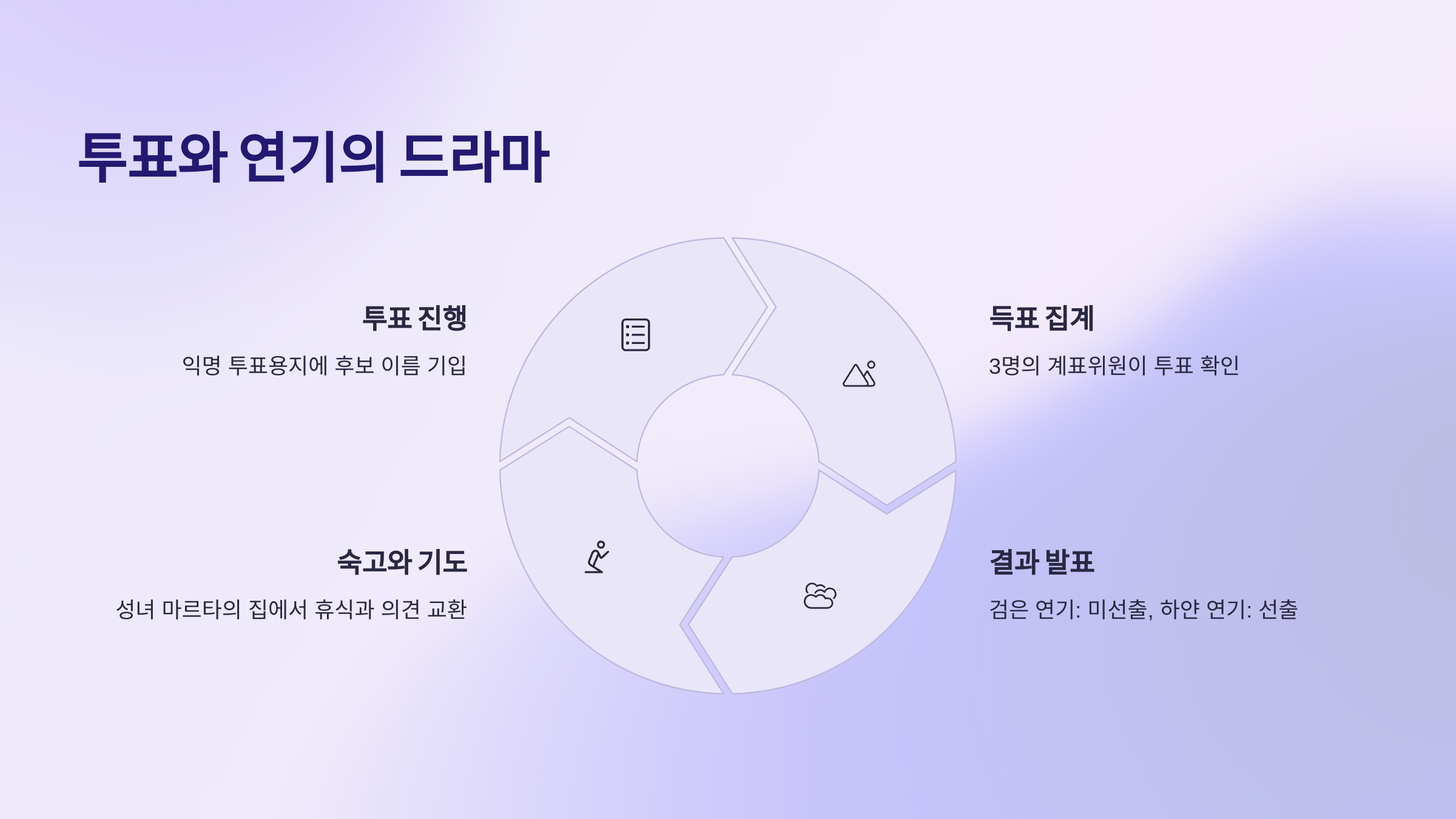 심야의 숙고와 다음 날의 투표: 첫날 오후 투표에서 당선자가 나오지 않으면 추기경들은 숙소인 성녀 마르타의 집으로 돌아가 저녁 식사를 하고 휴식을 취합니다. 이 시간 동안에도 추기경들은 서로 의견을 교환하며 다음 날 투표에 임할 후보에 대해 심사숙고합니다. 다음 날 오전, 다시 시스티나 경당에 모여 두 차례의 투표를 진행하고, 결과에 따라 검은 연기 또는 하얀 연기를 피워 올립니다. 이러한 과정이 24시간, 또는 그 이상 반복될 수 있습니다. 때로는 유력 후보군이 형성되기도 하고, 예상치 못한 인물이 부상하기도 하며, 경당 내에는 팽팽한 긴장감과 함께 성령의 인도를 갈구하는 간절한 기도가 끊이지 않습니다.