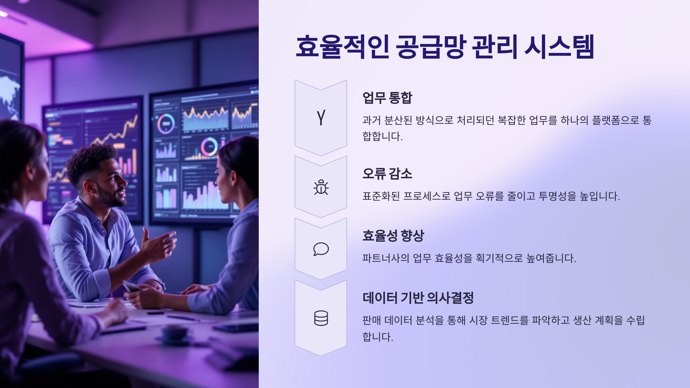 쿠팡 서플라이 허브는 단순히 업무 처리 도구를 넘어, 쿠팡의 빠르고 안정적인 로켓배송 시스템을 지탱하는 중요한 기반 시설입니다. 쿠팡은 이 시스템을 통해 수많은 파트너사로부터의 상품 공급 흐름을 체계적으로 관리하고 예측하며, 효율적인 재고 관리와 물류 운영을 가능하게 합니다. 파트너사 입장에서도 서플라이 허브를 통해 제공되는 판매 데이터 분석 리포트 등을 활용하여 시장 트렌드를 파악하고, 생산 및 재고 계획을 수립하는 등 데이터 기반의 의사결정을 내릴 수 있습니다. 따라서 쿠팡과 성공적인 비즈니스 관계를 유지하고 성장하기 위해서는 파트너사가 서플라이 허브의 기능을 정확히 이해하고 적극적으로 활용하는 것이 필수적입니다. 급변하는 이커머스 환경 속에서 효율적이고 투명한 공급망 관리는 기업 경쟁력의 핵심이며, 쿠팡 서플라이 허브는 이러한 현대적인 공급망 관리의 중요성을 보여주는 대표적인 사례라고 할 수 있습니다.
