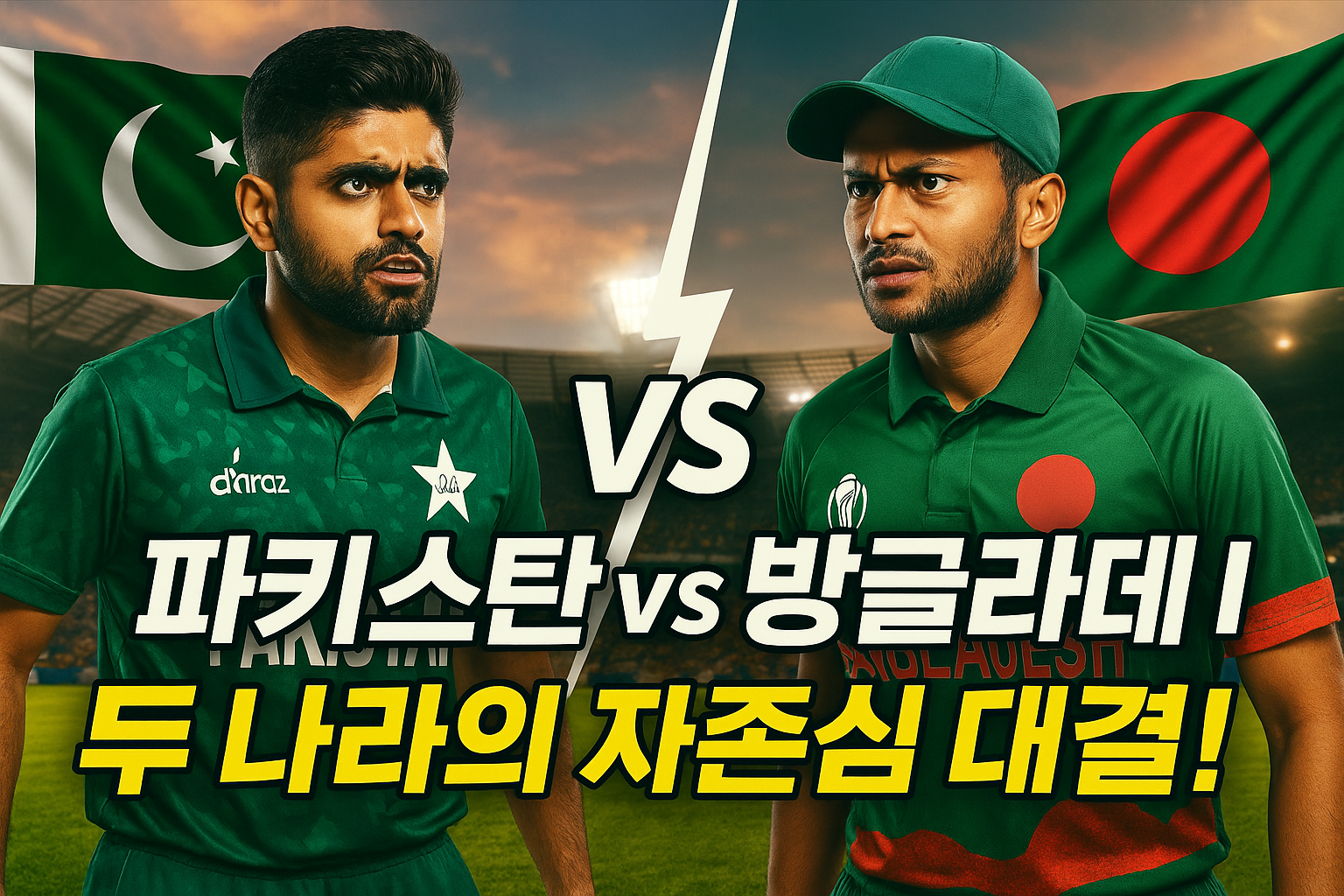 파키스탄 크리켓, 방글라데시 크리켓, 크리켓 경기, 남아시아 스포츠, 국제 크리켓, 샤힌 군단, 벵골 호랑이, 바바르 아잠, 샤킵 알 하산, 스포츠 라이벌