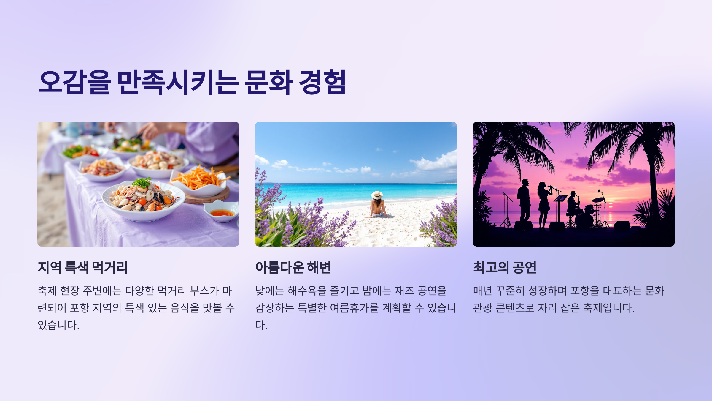 포항 칠포재즈페스티벌은 단순한 음악 감상을 넘어, 오감을 만족시키는 복합적인 문화 경험을 제공합니다.