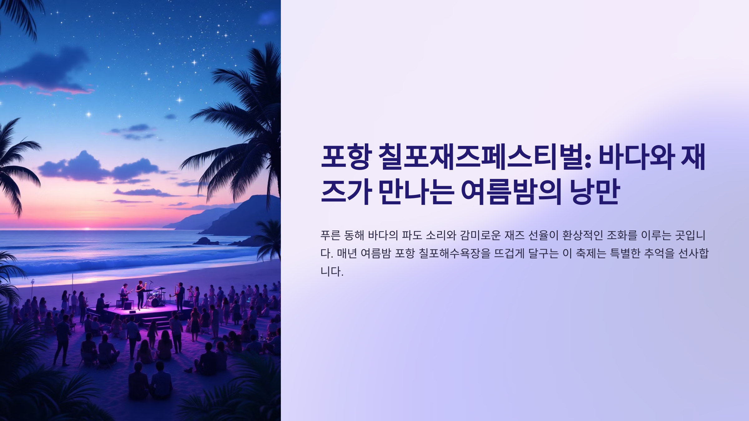포항 칠포재즈페스티벌, 재즈 페스티벌, 칠포해수욕장, 포항 여행, 여름 축제, 음악 축제, 국내 재즈, 해변 공연, 포항 가볼만한곳, 여름밤