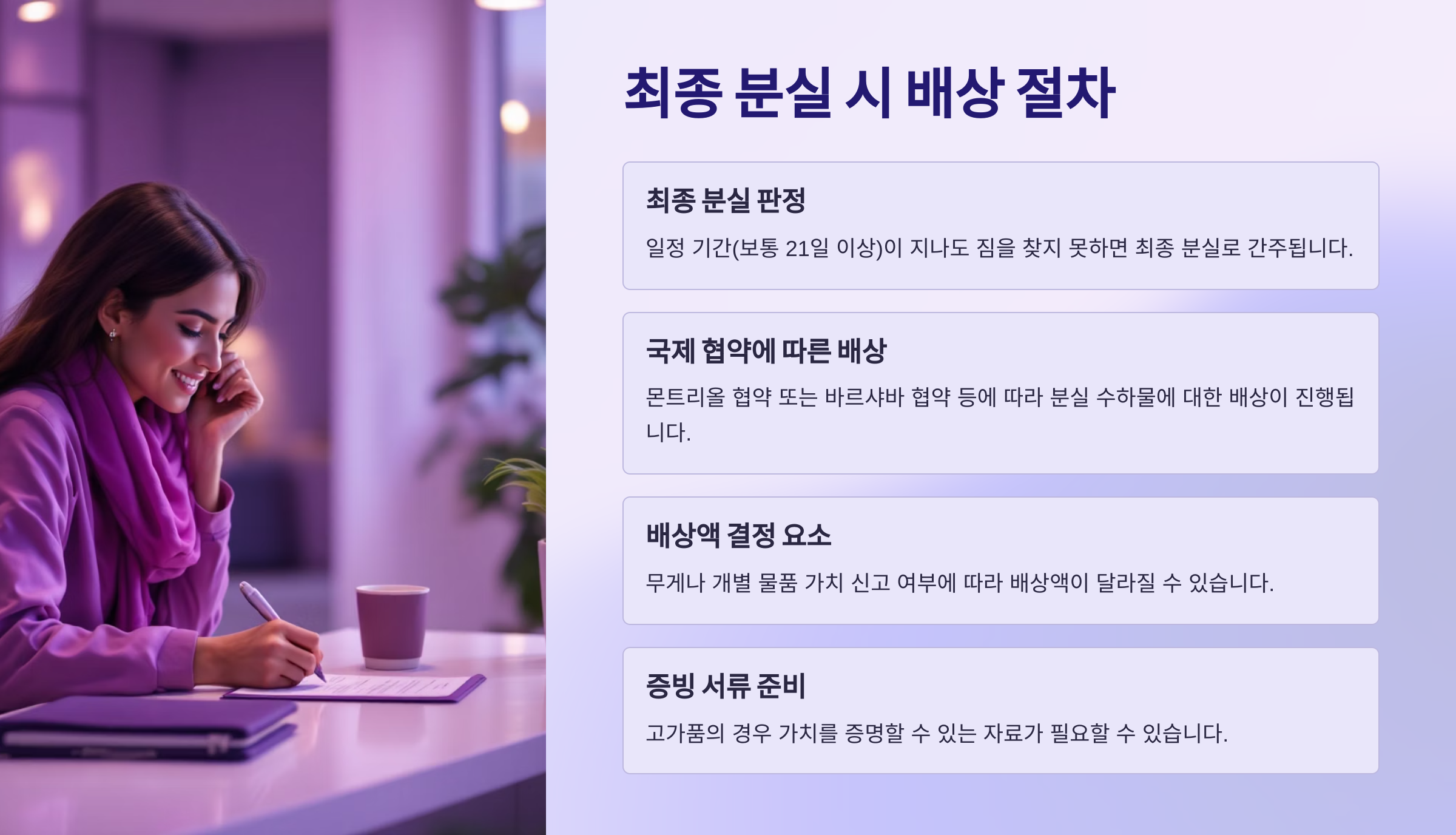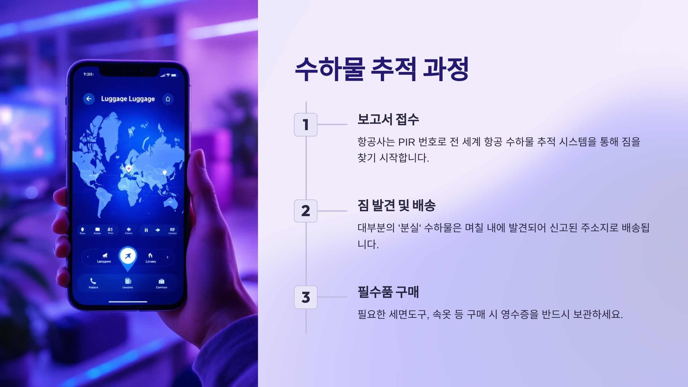 수하물 사고 보고서(PIR) 작성이 완료되면, 항공사는 해당 보고서 번호를 기준으로 전 세계 항공 수하물 추적 시스템(예: WorldTracer)을 통해 짐의 위치를 찾기 시작합니다. 대부분의 '분실' 수하물은 며칠 내에 발견되어 신고된 주소지로 배송됩니다. 만약 짐이 지연되어 당장 필요한 세면도구, 속옷 등 필수품을 구매해야 했다면, 해당 영수증을 반드시 보관해야 합니다. 항공사 규정에 따라 일정 한도 내에서 지연 보상금(일용품 구매 비용)을 청구할 수 있기 때문입니다. 안타깝게도 일정 기간(보통 21일 이상)이 지나도 짐을 찾지 못하면 최종 분실로 간주될 수 있습니다. 이 경우, 항공사는 국제 협약(몬트리올 협약 또는 바르샤바 협약 등) 및 자체 규정에 따라 분실 수하물에 대한 배상을 진행합니다. 배상액은 무게나 개별 물품 가치 신고 여부에 따라 달라질 수 있으며, 고가품의 경우 그 가치를 증명할 수 있는 자료(구매 영수증 등)가 필요할 수 있습니다. 따라서 PIR 작성 시 분실물 내용품 목록을 최대한 상세히 기재하고, 관련 증빙 서류를 미리 준비해두는 것이 좋습니다.