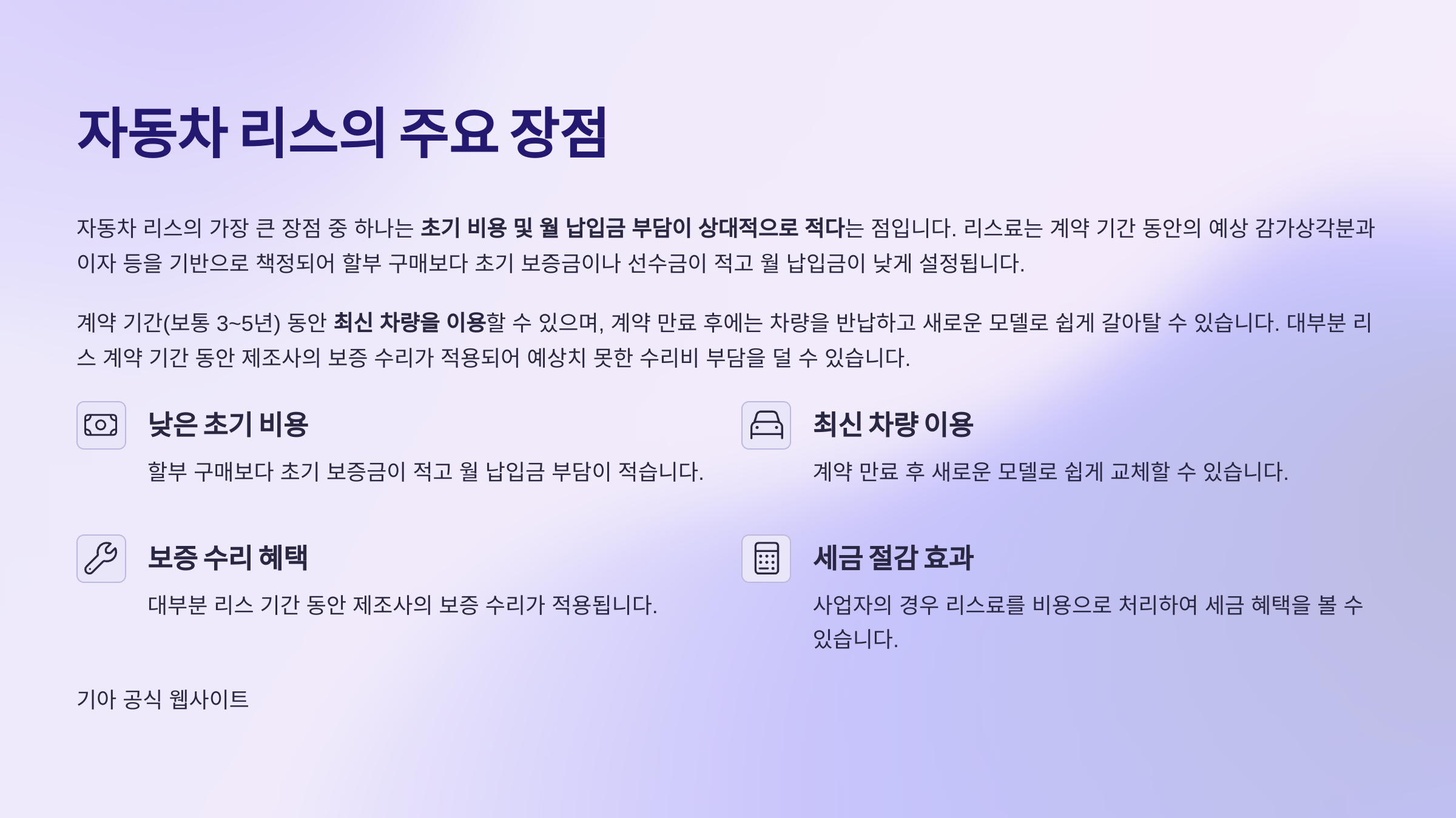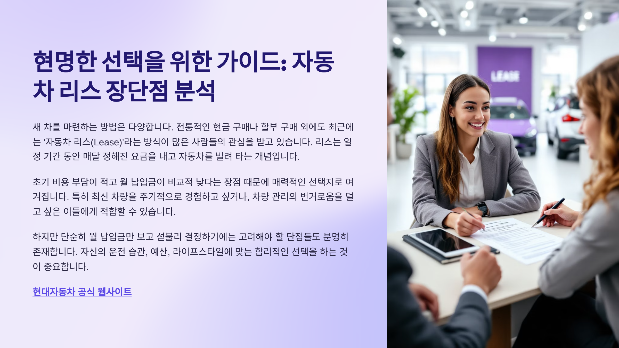 자동차 리스, 리스 장단점, 자동차 구매, 신차 리스, 리스 비용, 월 납입금, 주행거리 제한, 자동차 금융, 장기렌트 비교, 차량 구매 방법