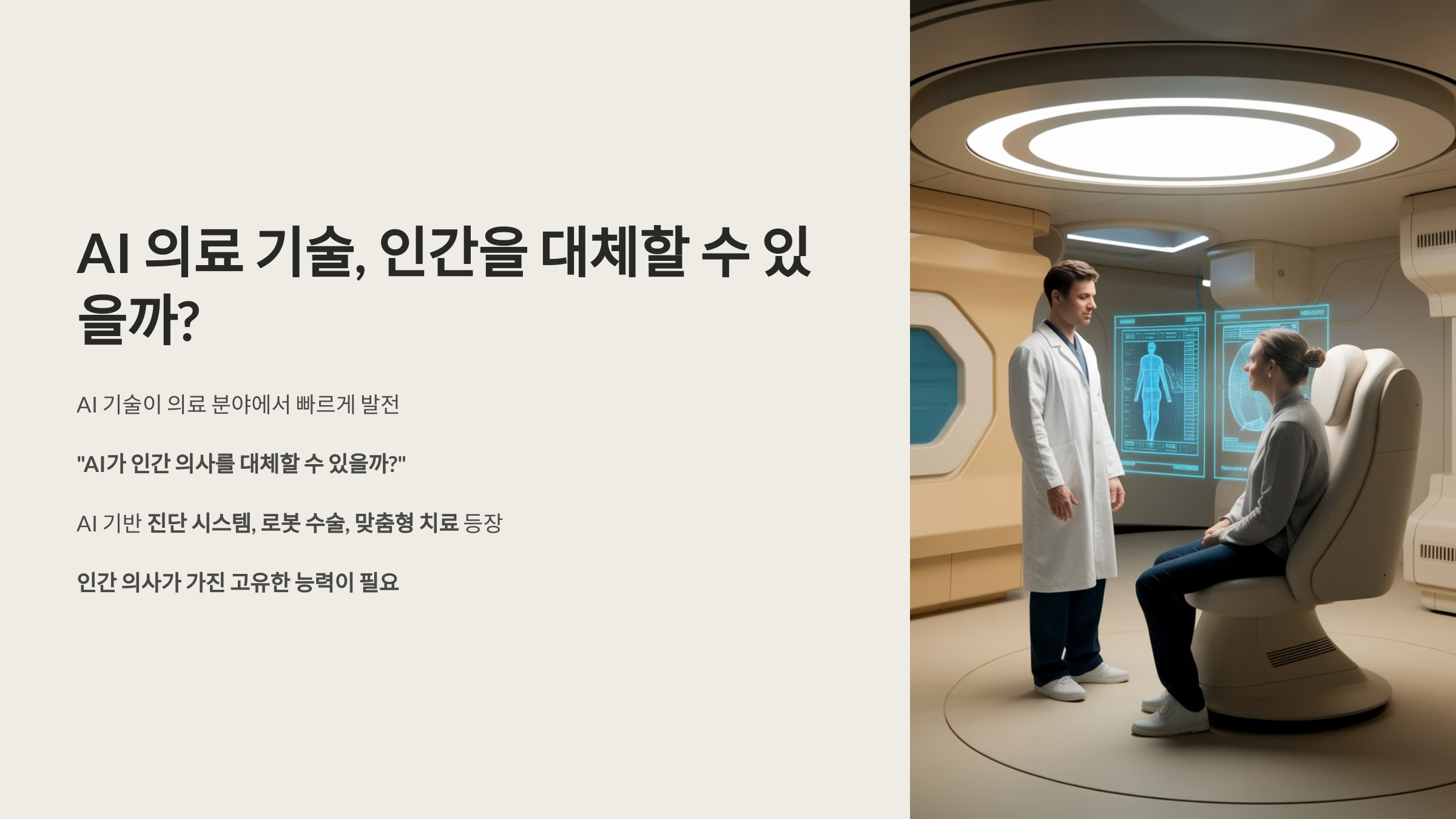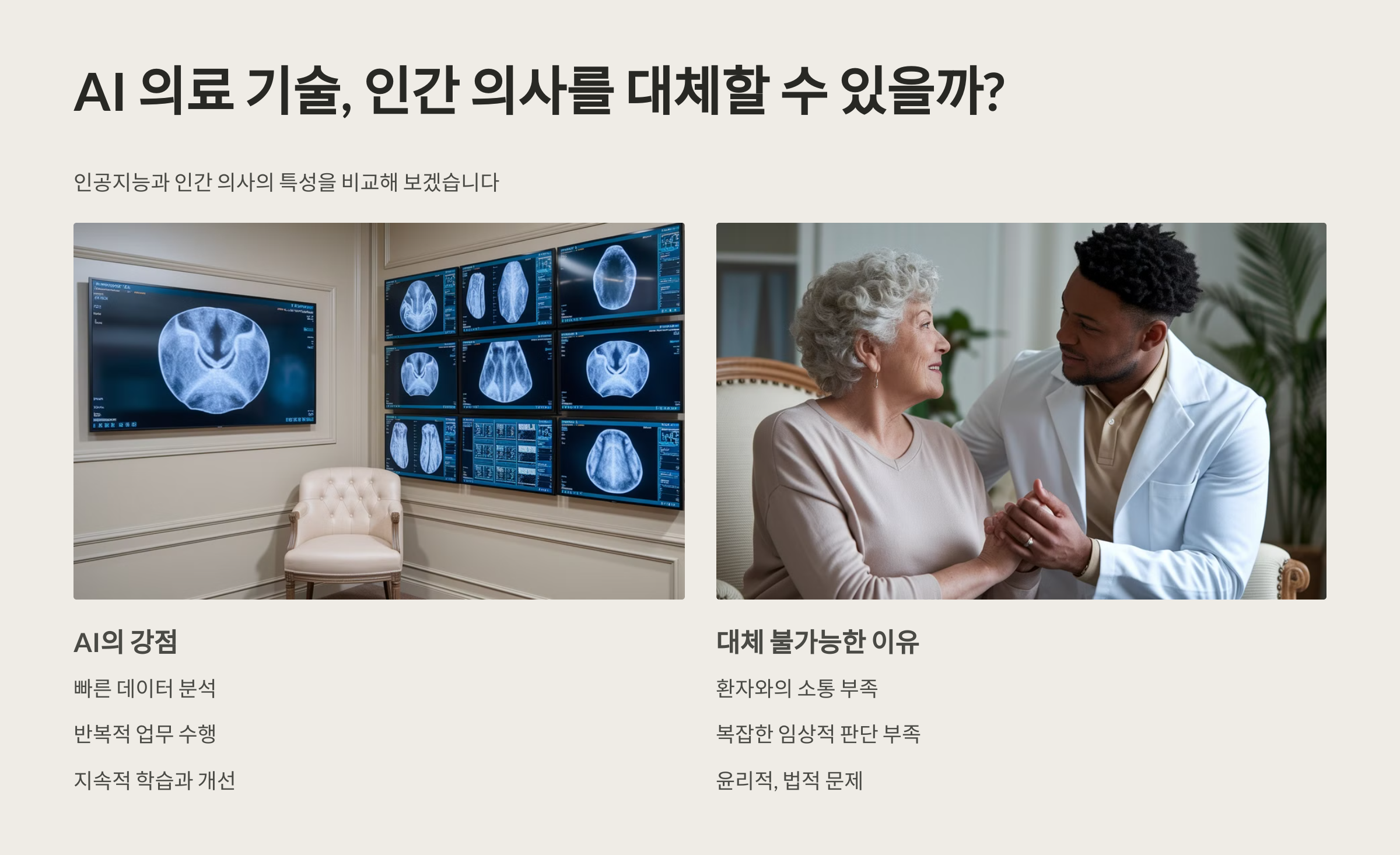 AI 기술이 의료 분야에서 빠르게 발전하면서 "과연 AI가 인간 의사를 대체할 수 있을까?"라는 질문이 떠오릅니다.