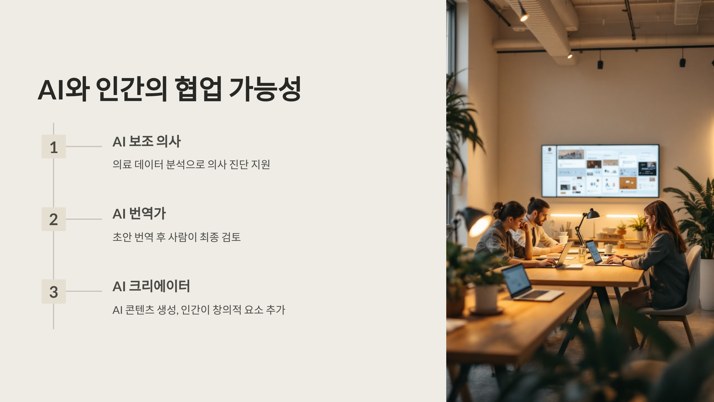AI는 인간을 대체하는 것이 아니라 보조하는 역할을 할 가능성이 커요.