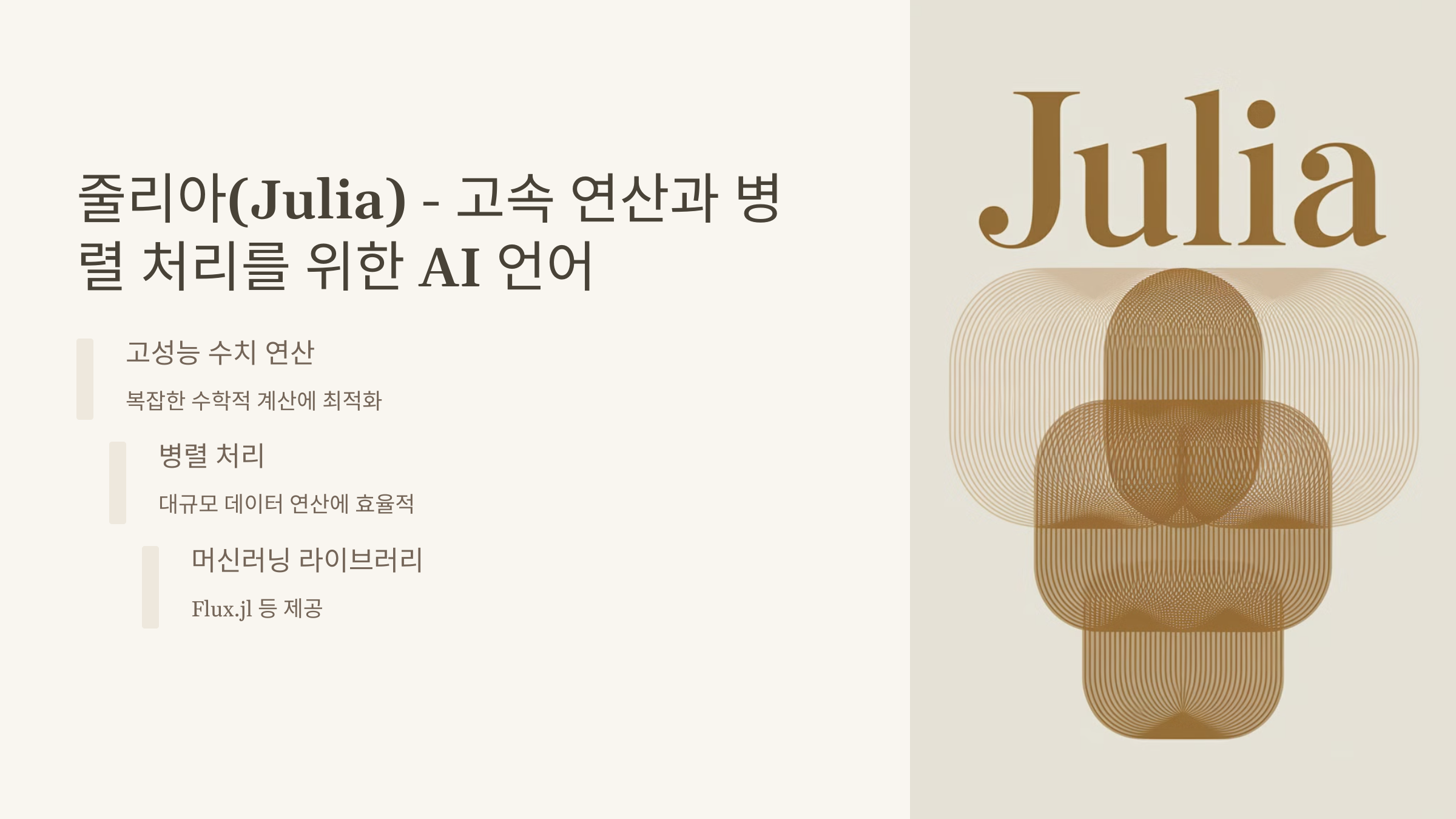 6️⃣ 줄리아(Julia) ⚡ - 고속 연산과 병렬 처리를 위한 AI 언어