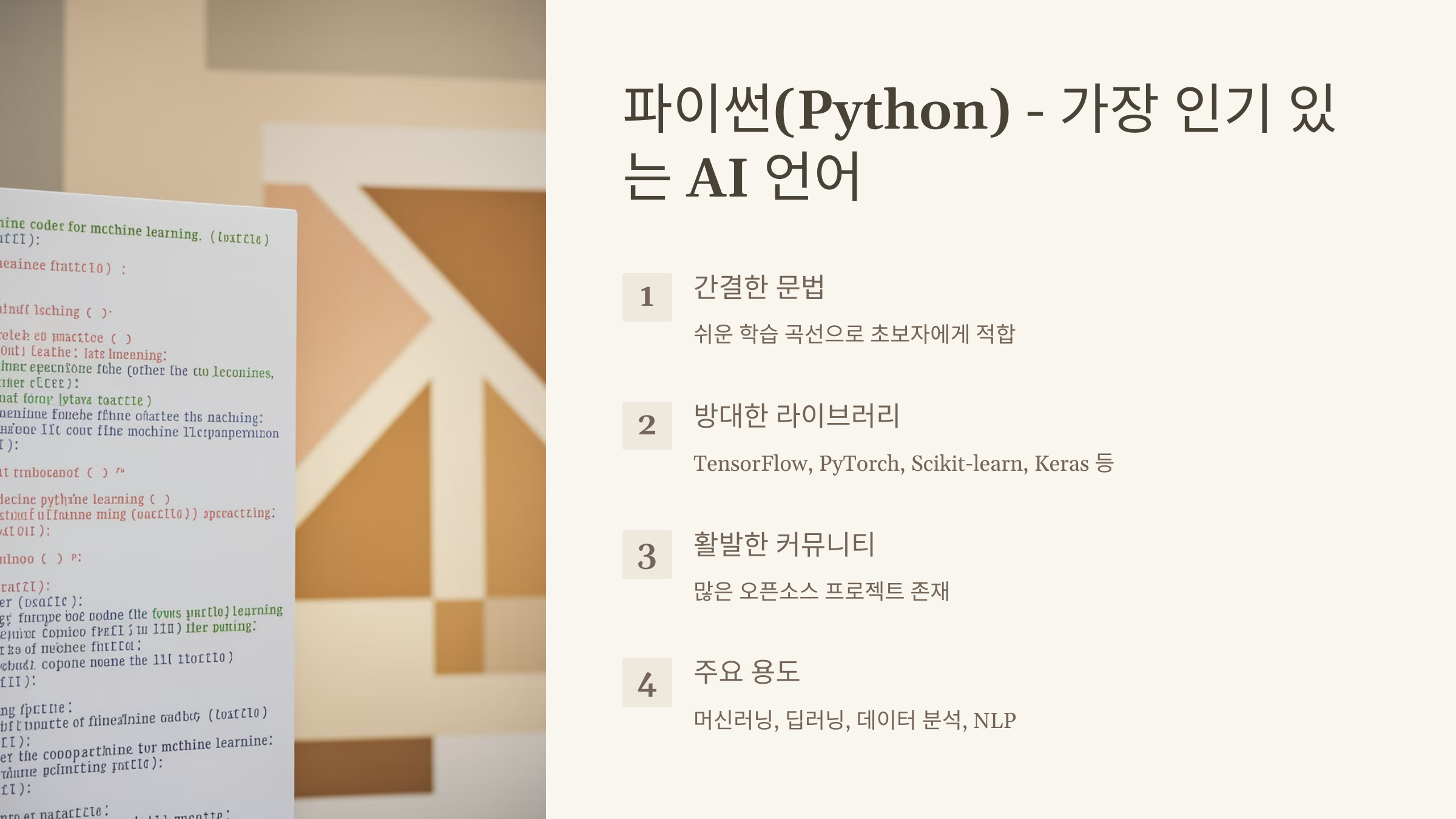1️⃣ 파이썬(Python) 🐍 - 가장 인기 있는 AI 언어