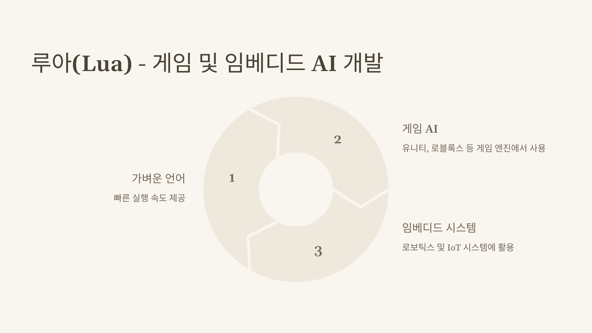 📌 루아는 가볍고 빠르기 때문에 게임 AI 및 임베디드 시스템과 같은 실시간 처리가 중요한 환경에서 많이 사용됩니다.