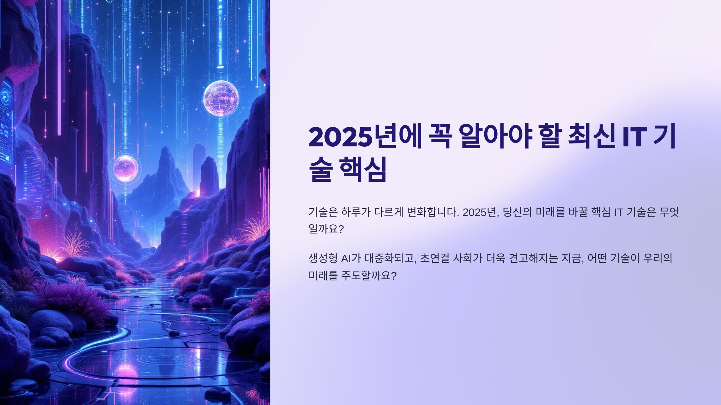 기술은 하루가 다르게 변화합니다. 2025년, 당신의 미래를 바꿀 핵심 IT 기술은 무엇일까요?