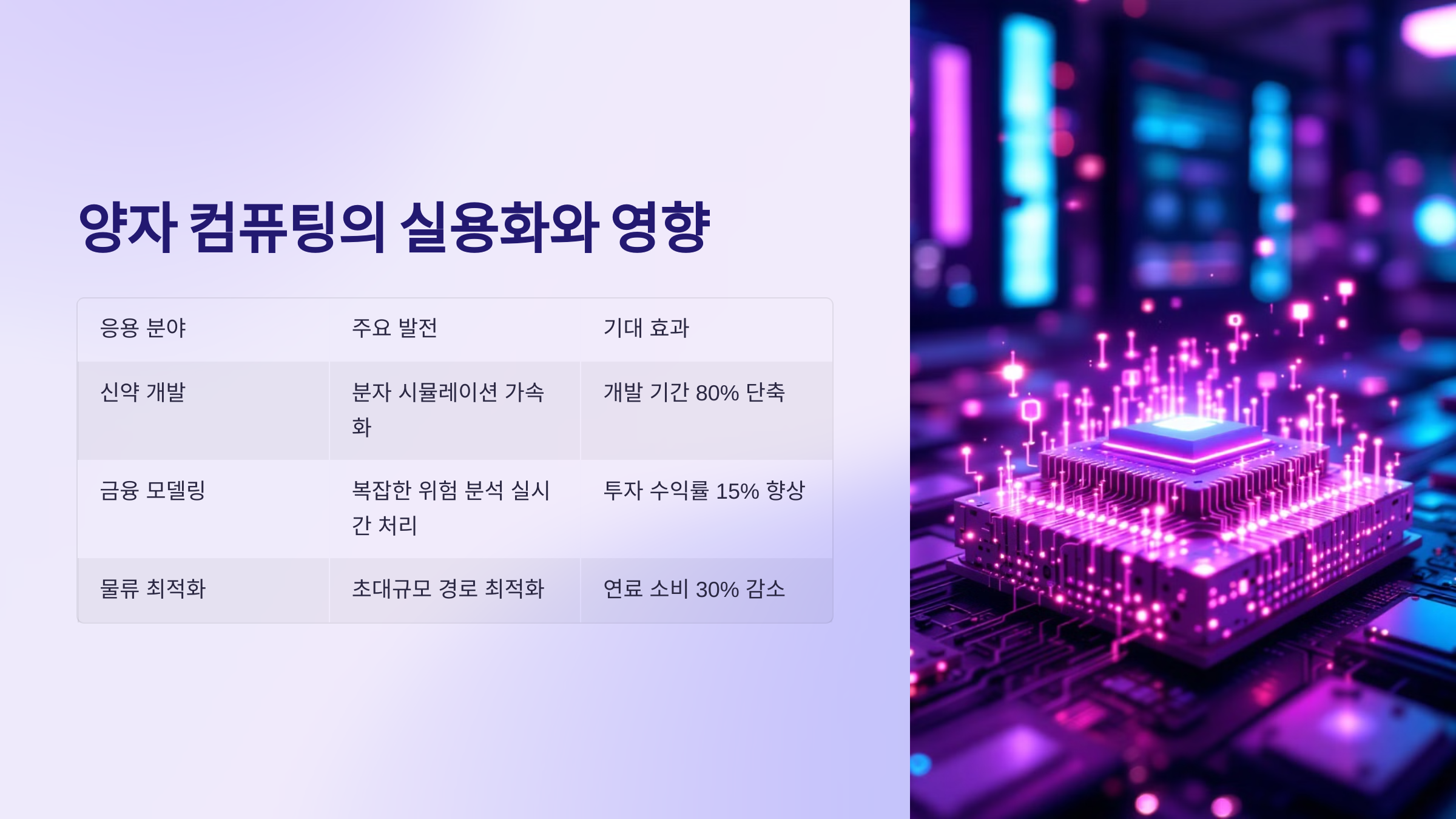 | 양자 컴퓨팅 응용 분야 | 주요 발전 | 기대 효과 |