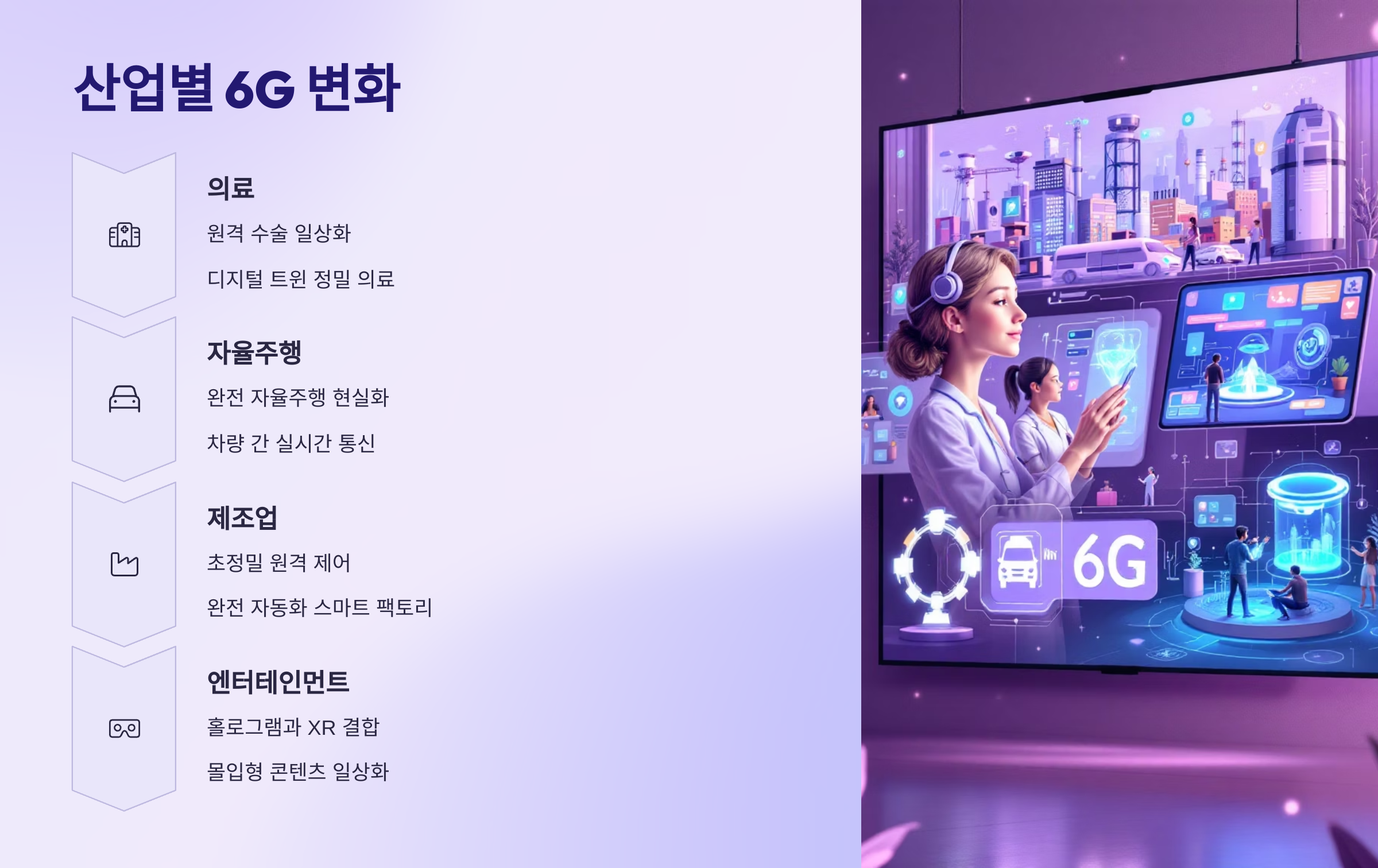 - 제조업: 초정밀 원격 제어와 디지털 트윈 기술로 완전 자동화된 스마트 팩토리가 구현됩니다. 생산성과 효율성이 크게 향상될 것입니다.