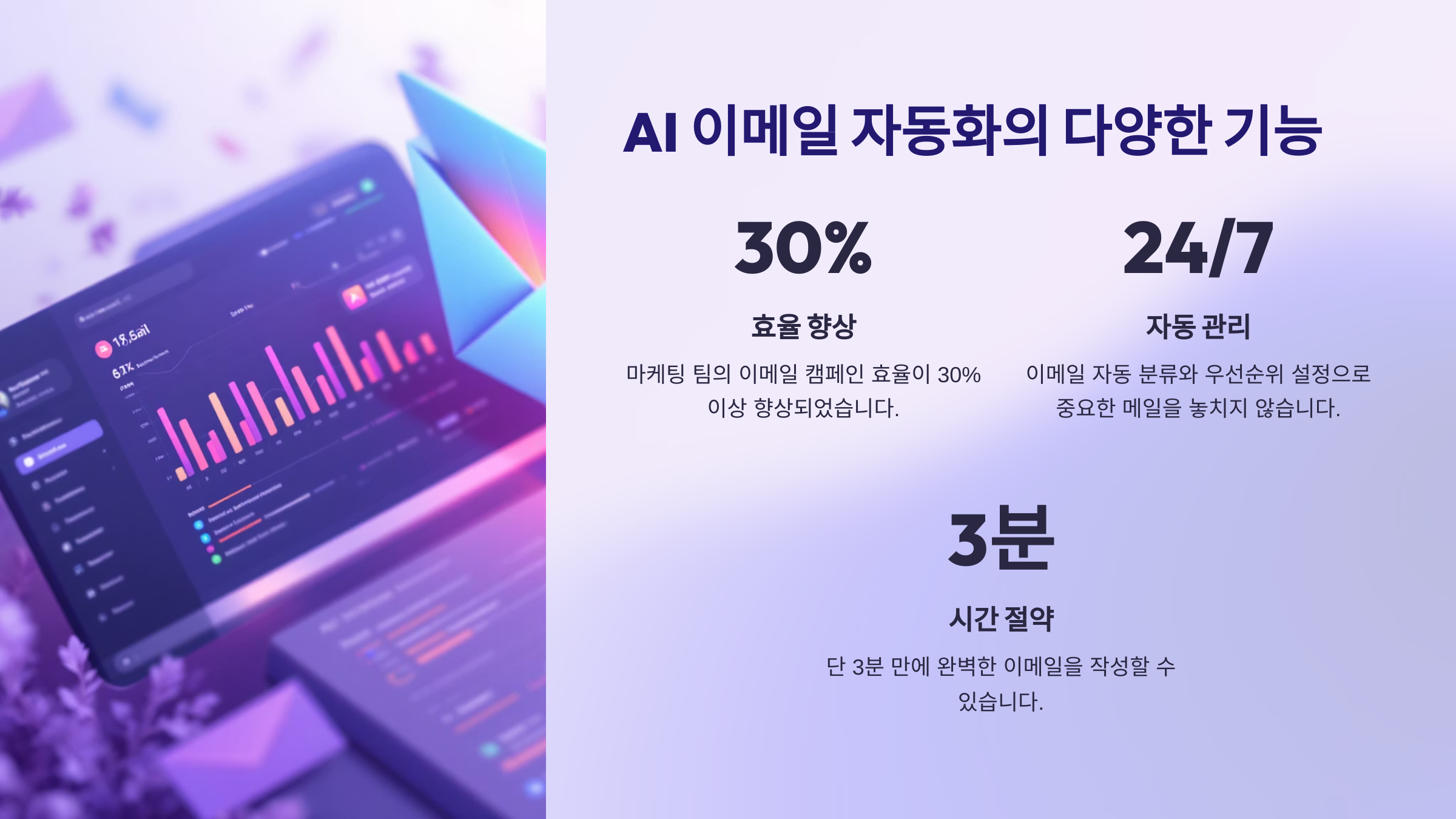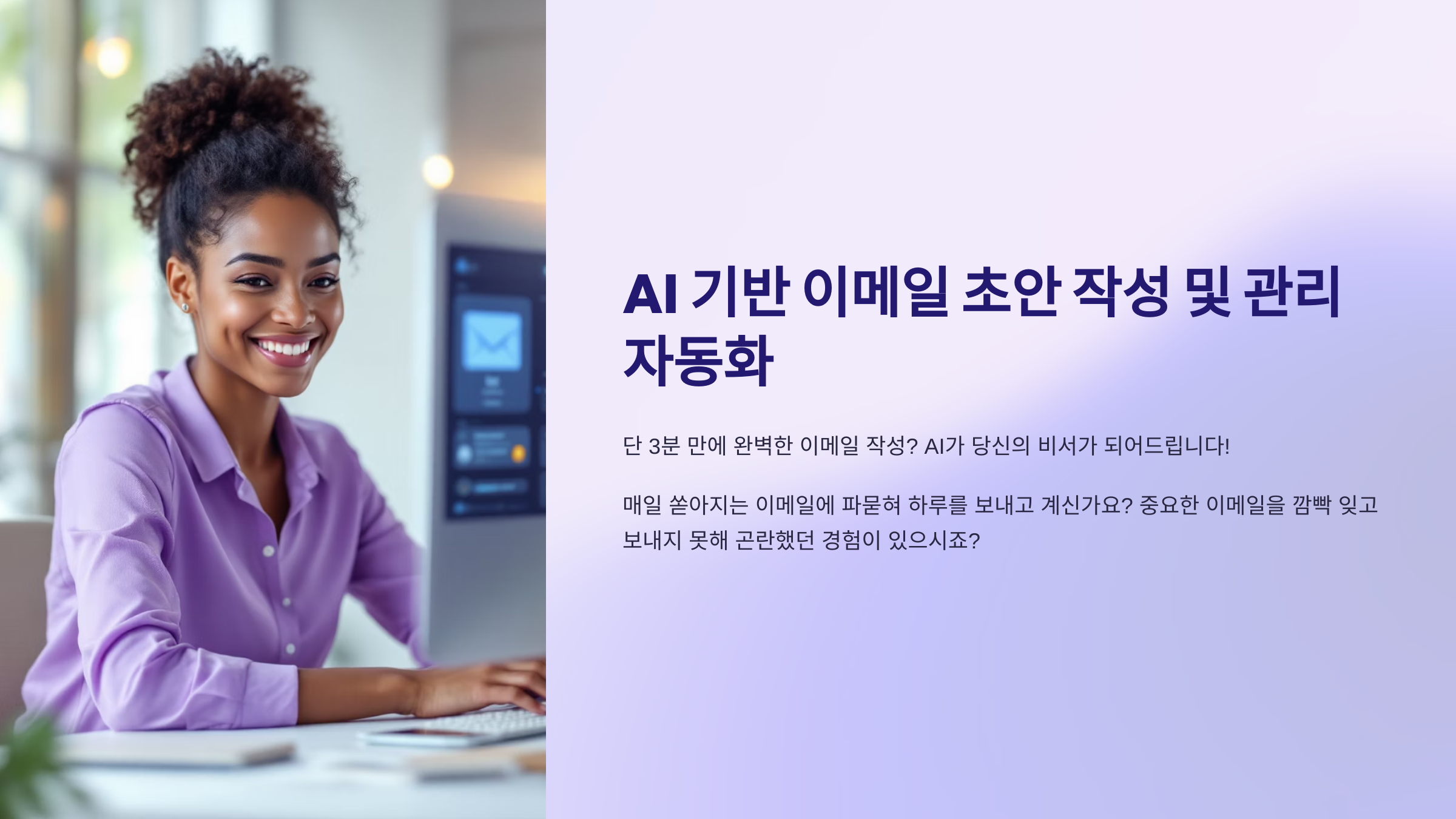 지금부터 단 3분 만에 완벽한 이메일을 작성하고, 효율적인 이메일 관리를 가능하게 해주는 AI 기반 이메일 자동화의 세계로 여러분을 초대합니다!