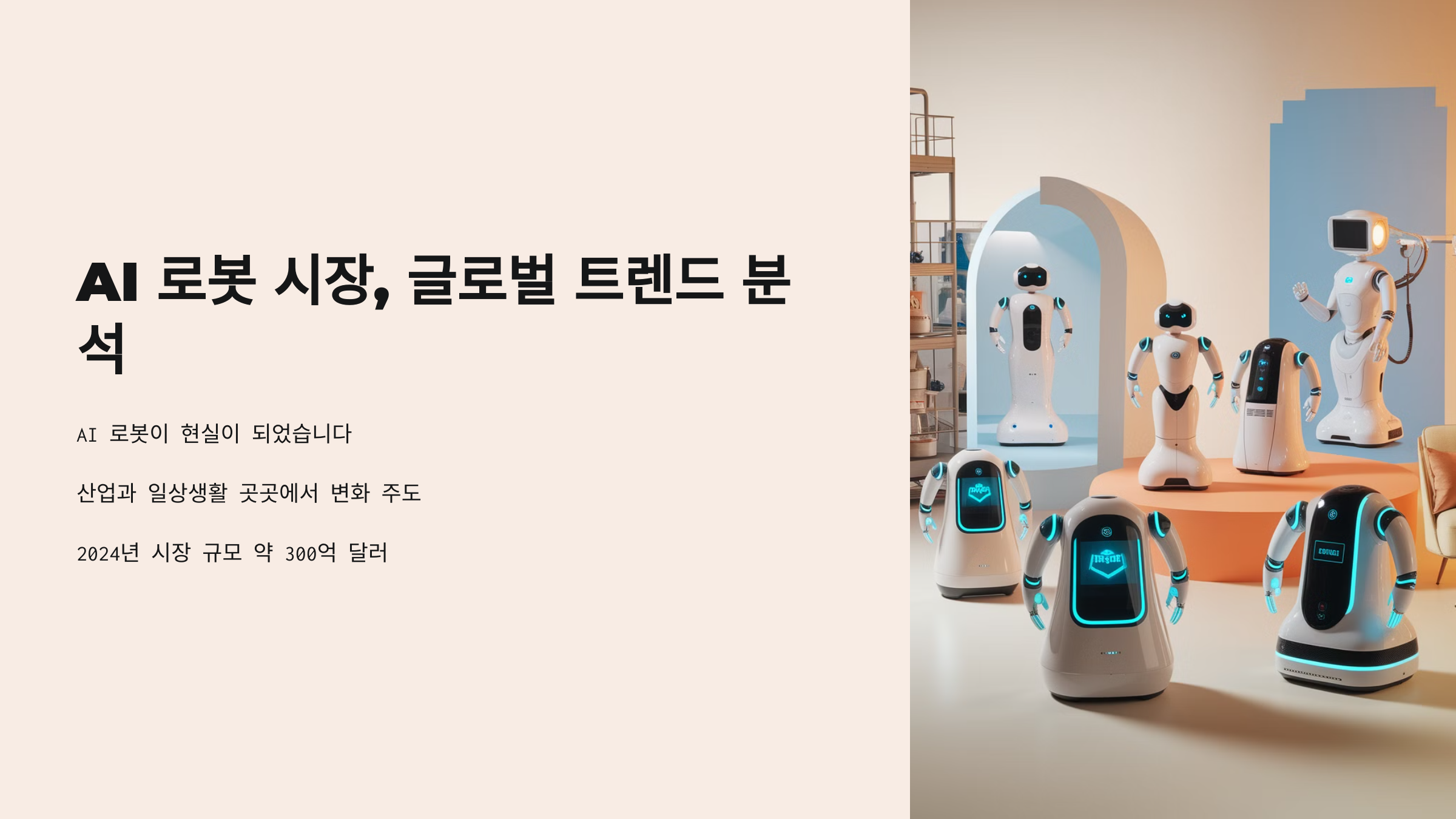 AI 로봇이 단순한 상상이 아니라 현실이 되었습니다. 이미 산업과 일상생활 곳곳에서 변화를 주도하고 있는 AI 로봇 시장, 어디까지 왔을까요?