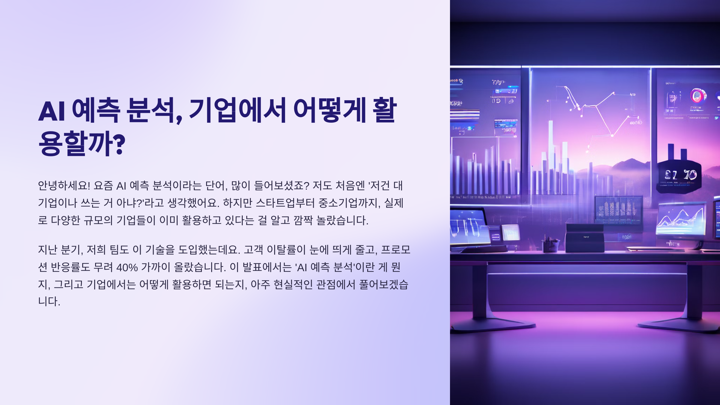 안녕하세요! 요즘 AI 예측 분석이라는 단어, 많이 들어보셨죠? 저도 처음엔 ‘저건 대기업이나 쓰는 거 아냐?’라고 생각했어요. 하지만 스타트업부터 중소기업까지, 실제로 다양한 규모의 기업들이 이미 활용하고 있다는 걸 알고 깜짝 놀랐습니다. 지난 분기, 저희 팀도 이 기술을 도입했는데요. 고객 이탈률이 눈에 띄게 줄고, 프로모션 반응률도 무려 40% 가까이 올랐습니다. 이 글에서는 ‘AI 예측 분석’이란 게 뭔지, 그리고 기업에서는 어떻게 활용하면 되는지, 아주 현실적인 관점에서 풀어보겠습니다.