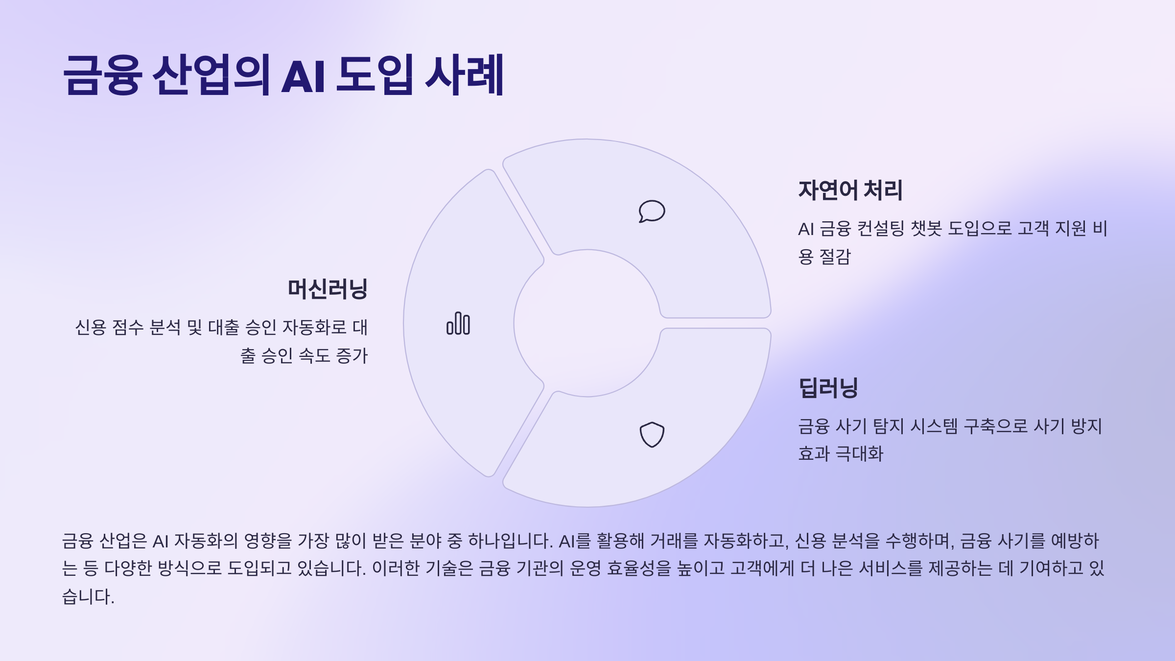 | 자연어 처리 | AI 금융 컨설팅 챗봇 | 고객 지원 비용 절감 |