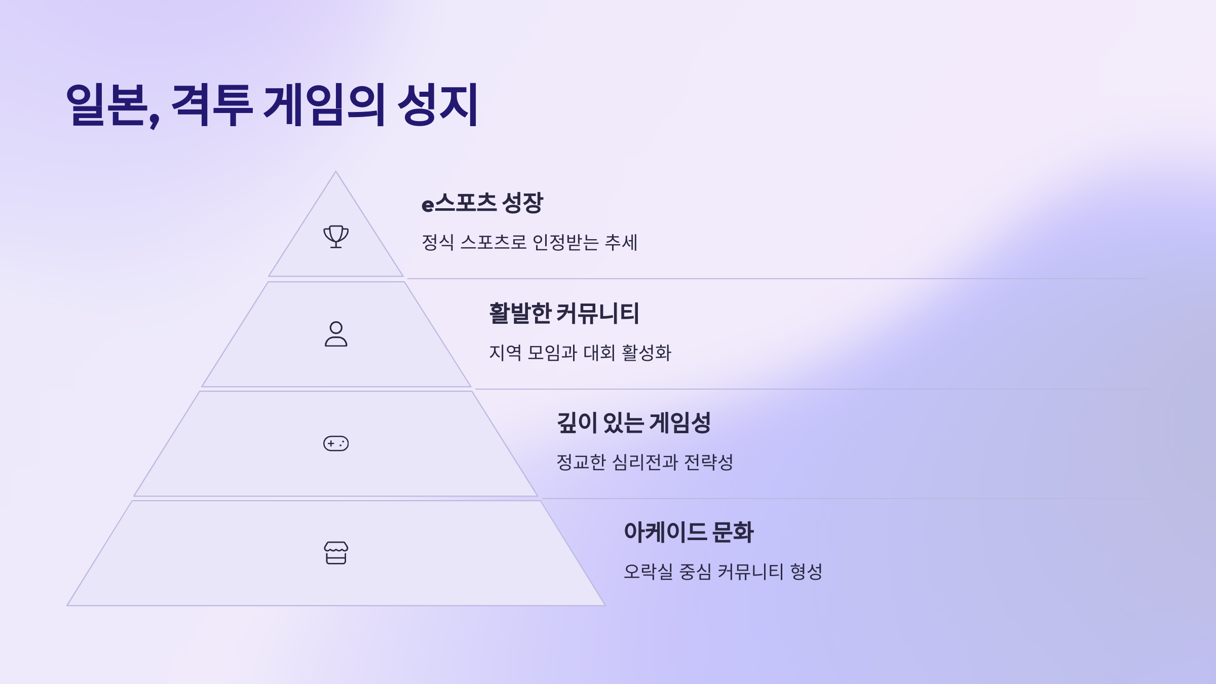 - 아케이드 문화의 유산: 일본은 과거 '스트리트 파이터 2'를 필두로 한 아케이드 격투 게임의 황금기를 이끌었던 나라입니다. 당시 형성된 아케이드(오락실) 중심의 커뮤니티와 경쟁 문화는 지금까지도 이어져 내려오며 격투 게임 인기의 든든한 뿌리가 되고 있습니다. 지금도 일본의 대형 오락실에서는 최신 격투 게임을 즐기는 사람들을 쉽게 찾아볼 수 있습니다.